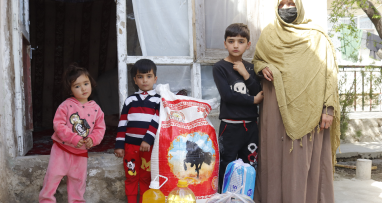 In photo: Female led households receive emergency food packages