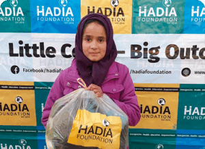 In photo: Maryam, a recipient of HADIA Foundation’s emergency food aid program