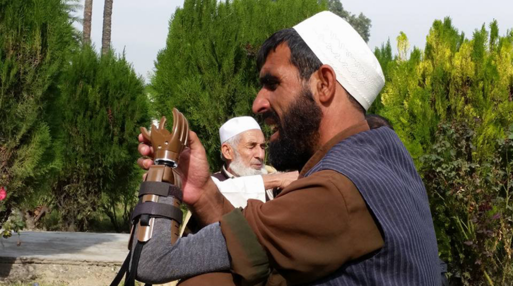 In photo: Ahmad, receives a prosthetic hand that helps him with his daily functions